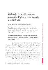Maria Aparecida Oliveira do Nascimento1 Revista da ATO - escola de psicanálise | Belo Horizonte | O Nó e a Clínica | Ano III, n. 2 | 2016